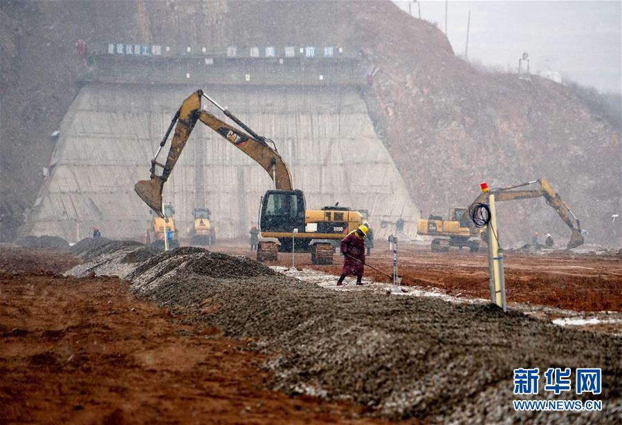 12月27日,工作人員和大型機械在前坪水庫大壩上施工。目前,被國務院列為172項節(jié)水供水重大水利工程之一的前坪水庫主體工程建設進度已超八成。該水庫位于河南省汝陽縣前坪村,是一座以防洪為主,兼具供水、灌溉、發(fā)電功能的大型水利樞紐工程。新華社記者 李安 攝