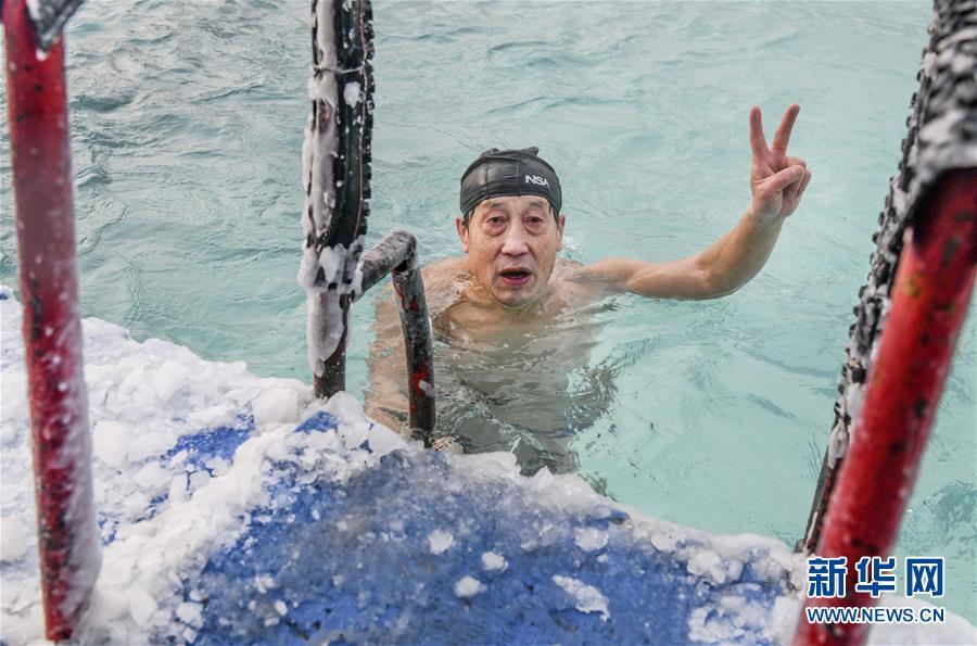 當(dāng)日,新疆烏魯木齊戶外氣溫接近零下20攝氏度,許多冬泳愛好者不懼嚴(yán)寒,來(lái)到烏魯木齊紅山游泳中心戶外泳池進(jìn)行冬泳運(yùn)動(dòng),鍛煉身體,磨練意志。