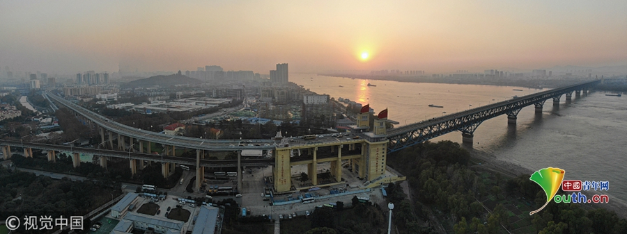 2017年9月19日,南京長江大橋正橋的混凝土面板已經(jīng)全部拆除,僅剩交錯(cuò)縱橫的鋼桁架橫跨在長江之上,從高空俯瞰猶如一條“鋼鐵巨龍”。