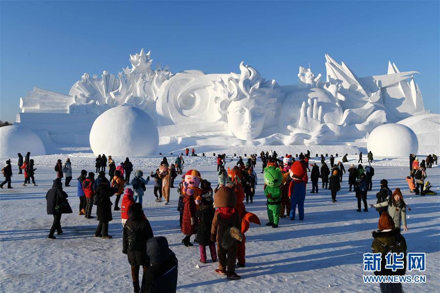 12月29日,游客在太陽島雪博會園區(qū)游玩拍照。 當日,第31屆哈爾濱太陽島國際雪雕藝術(shù)博覽會正式開園。本屆太陽島雪博會以“歡樂雪博會·夢幻雪域游”為主題,占地90萬平方米,分為五大景區(qū)。 新華社記者 王建威 攝