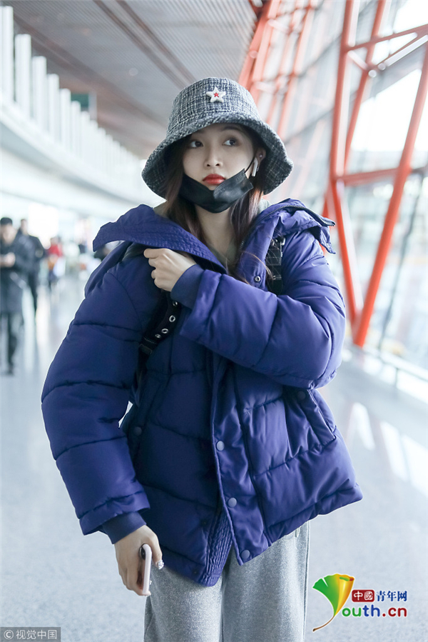1月1日,北京,吳宣儀現(xiàn)身機場。外帶著漁夫帽的她嘟嘴顯可愛,裹著厚重羽絨服認真過冬超保暖。