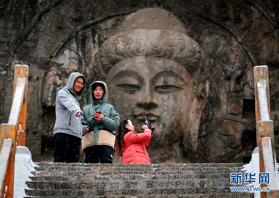 當日,雪后的河南洛陽龍門石窟景區(qū)銀裝素裹,一幅天然的水墨畫卷徐徐展開。