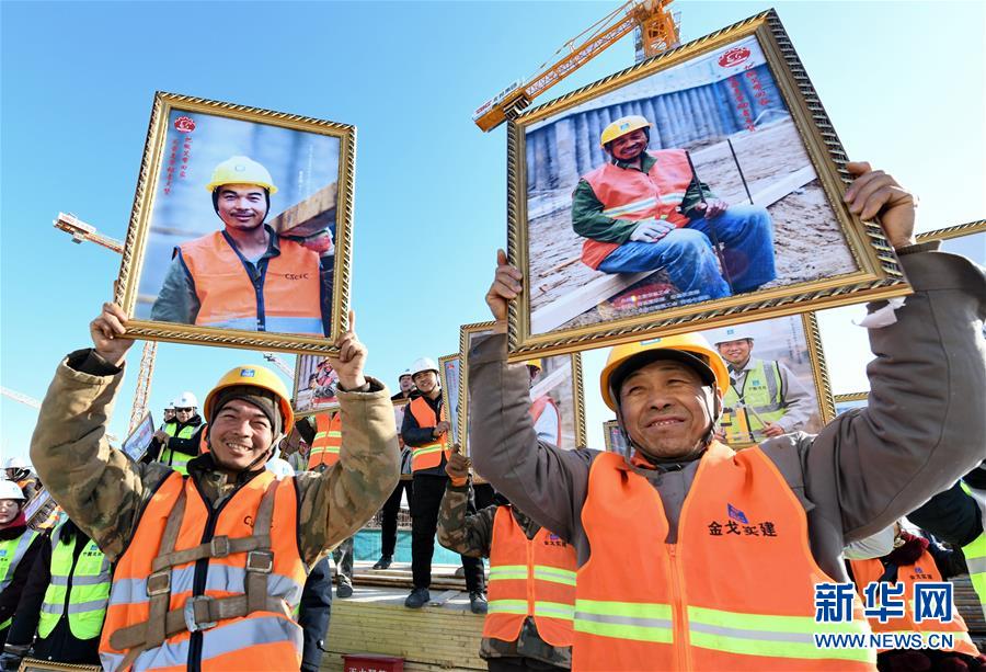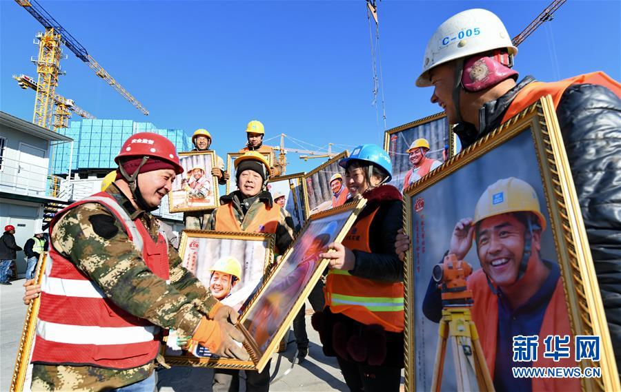 1月9日,中建一局北京城市副中心周轉(zhuǎn)房項(xiàng)目工地的建筑工人在展示自己的照片。 當(dāng)日,由北京市總工會(huì)主辦的工會(huì)“兩節(jié)”送溫暖活動(dòng)之一的“把微笑帶回家,為最美勞動(dòng)者點(diǎn)贊”大型公益活動(dòng),在中建一局北京城市副中心職工周轉(zhuǎn)房項(xiàng)目工地舉行。眾多勞動(dòng)者獲贈(zèng)“微笑”肖像照和保溫壺、毛巾等新春“大福包”。 新華社記者 李欣 攝