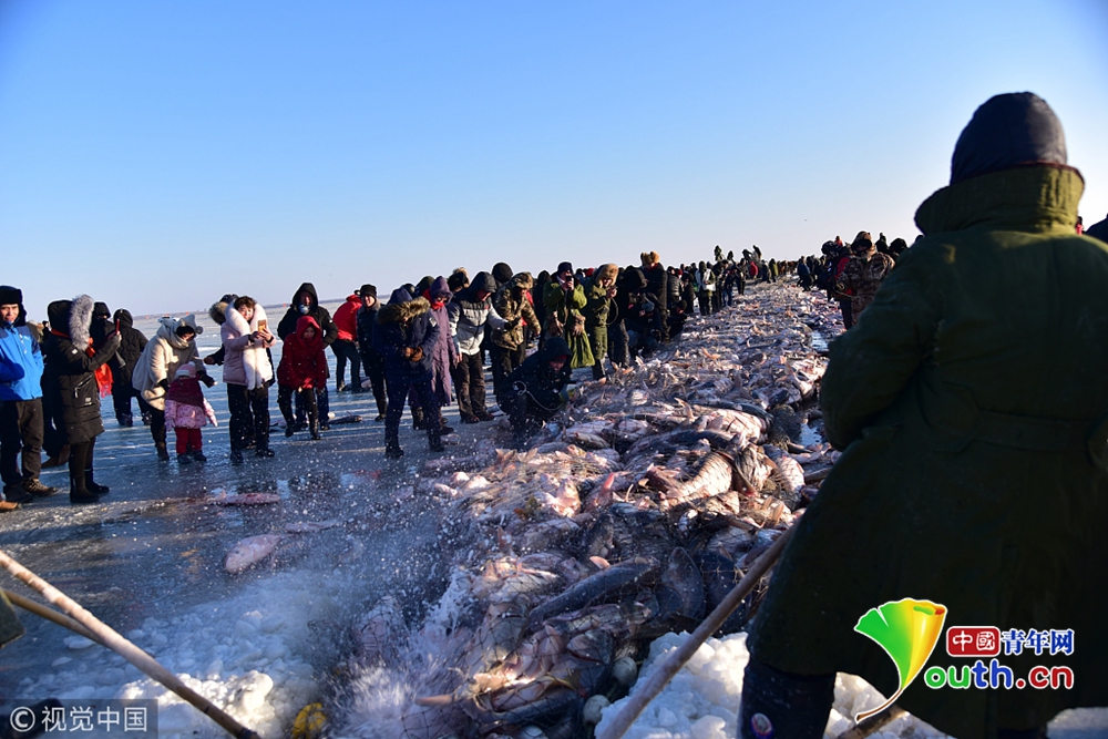 2018年12月26日,吉林松原,查干湖迎來(lái)了“紅網(wǎng)”,單網(wǎng)捕撈約30萬(wàn)斤。