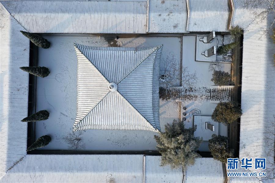1月10日無人機拍攝的少林寺一景。當日,雪后初霽,河南登封少林寺分外秀美。 新華社記者 馮大鵬 攝