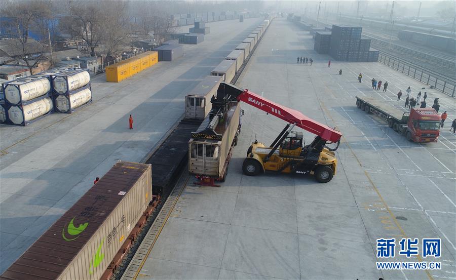 1月14日,工作人員在北京大紅門站準(zhǔn)備卸貨。 當(dāng)日,從廣西發(fā)出的“年貨”集裝箱班列“百色一號(hào)”抵達(dá)北京鐵路局北京大紅門站,滿載南方新鮮果蔬、凍海產(chǎn)品的集裝箱將從這里配送到京津冀地區(qū),不僅豐富老百姓的節(jié)日餐桌,也為廣西地區(qū)的特色農(nóng)產(chǎn)品打開了北方銷售市場。 新華社記者 邢廣利 攝