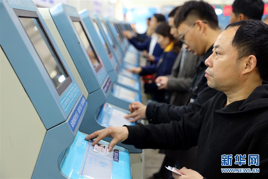 1月15日,旅客在廣州火車站售票大廳外臨時搭建的互聯(lián)網(wǎng)購票取票大棚內(nèi)的自助終端上取票。 為適應(yīng)互聯(lián)網(wǎng)購票旅客比重持續(xù)上升趨勢,廣州火車站在籌備2019年春運(yùn)票務(wù)業(yè)務(wù)時,優(yōu)化互聯(lián)網(wǎng)購票取票和退改簽業(yè)務(wù)辦理流程設(shè)計,提升效率,方便旅客出行。 新華社記者劉大偉攝