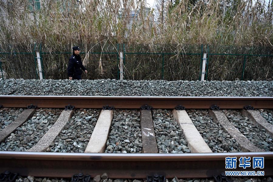 1月16日,汪茂才在巡線途中。 今年52歲的汪茂才是合肥鐵路公安處黃山站派出所歙縣警務室的一名線路民警,他所在的警務室負責皖南山區(qū)皖贛鐵路線約80公里范圍內的線路安全。從警30年來,線路巡查、鐵路安全知識宣傳等是汪茂才的日常工作。多年來的徒步巡線,讓汪茂才練就了一雙快腿,十公里的路,汪茂才兩個小時就能走完。 汪茂才負責的鐵路沿線周邊村莊較多,很多房子都是沿鐵路線而建,有些村民為了圖方便,違規(guī)穿越鐵路線。加強對鐵路沿線居民的安全宣傳教育,成為汪茂才的一項重要工作,沿線村民的安全意識也越來越高。 對汪茂才這樣的線路民警來說,大多數時候都是“獨行俠”,“當線路民警就要耐得住寂寞,守得住孤獨,與大山為伴,與線路為友,盡己所能,為鐵路安全運行保駕護航?!蓖裘耪f。 新華社記者劉軍喜攝