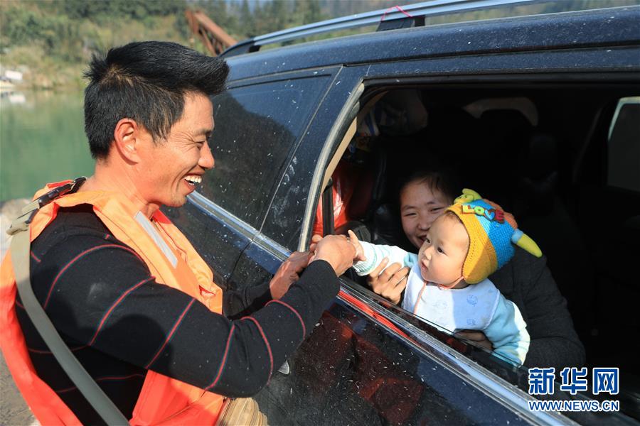 1月22日,何銀祥在渡船上指揮乘客上船。 新華社記者 歐東衢 攝