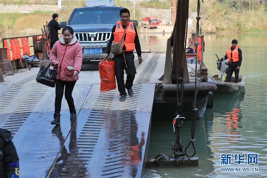 1月22日,渡輪在八吉渡口接送群眾(無人機(jī)拍攝)。新華社記者 歐東衢 攝