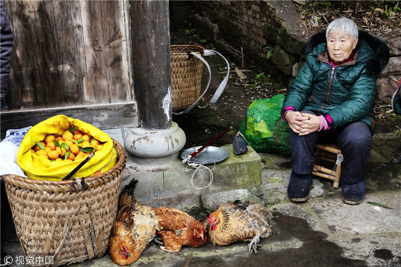 2019年1月26日,重慶中山古鎮(zhèn),880桌“千米長宴”5萬人共品年味。當(dāng)?shù)刳s來的村民。