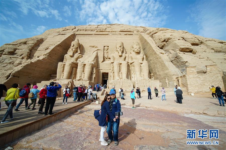2月7日,在埃及南部阿斯旺省,兩名中國游客在阿布·辛拜勒神廟前自拍留影。 雖然中國人過春節(jié)的傳統是返鄉(xiāng)回家,但越來越多的國人選擇在春節(jié)期間走出國門,利用春節(jié)假期外出旅游。 新華社記者 李碧念 攝
