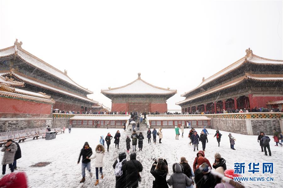 2月14日,游客在雪中游覽北京故宮。 當日,北京降雪,大批游人來到故宮游覽賞雪。 新華社記者 鞠煥宗 攝