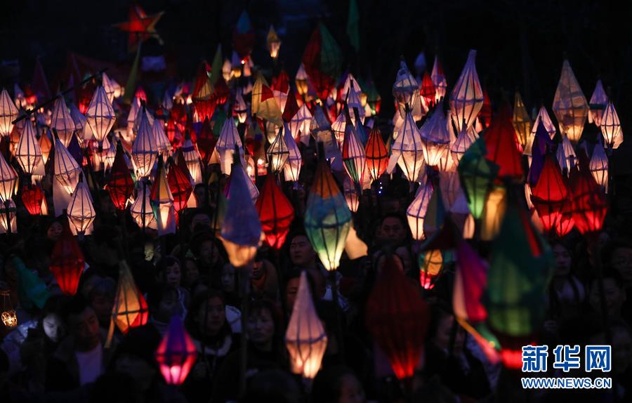 2月18日,群眾在四川省南充市嘉陵區(qū)金寶鎮(zhèn)點(diǎn)亮“蠐蟆燈”。 當(dāng)日是農(nóng)歷正月十四,夜幕降臨后,川渝等地?cái)?shù)萬名群眾在四川省南充市嘉陵區(qū)金寶鎮(zhèn)匯聚,點(diǎn)亮“蠐蟆燈”,敲著鑼鼓唱著歌謠,將“蠐蟆”送到幾公里外的田邊或者河邊燒掉,祈福健康平安。星星點(diǎn)點(diǎn)的燈光在鄉(xiāng)間小路閃爍移動(dòng),場面壯觀熱烈。 “送蠐蟆”祈福這一習(xí)俗源于清朝,歷經(jīng)演變成為川東北地區(qū)一個(gè)古老而神秘的地方民俗節(jié)日。 新華社記者 江宏景 攝