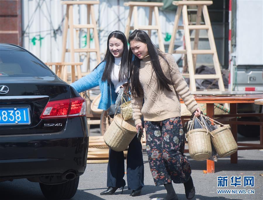 3月12日,人們?cè)诟=ㄎ湟纳健安耦^會(huì)”上采購(gòu)傳統(tǒng)竹制品。