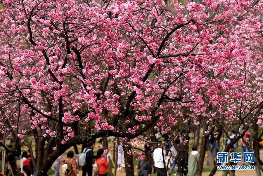 游人在昆明圓通山公園觀賞盛開的櫻花(3月16日攝)。近日,云南省昆明市迎來櫻花盛開的時節(jié)。昆明圓通山公園的數(shù)千株櫻花燦爛綻放,吸引了市民和游客前來觀花賞景。新華社記者藺以光攝