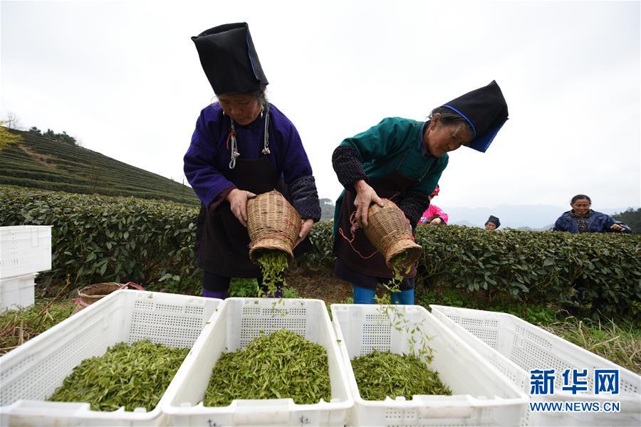 近日,隨著氣溫回升,貴州省黔東南苗族侗族自治州丹寨縣“扶貧茶園”的春茶陸續(xù)進(jìn)入采摘期。 2018年以來,丹寨縣創(chuàng)新產(chǎn)業(yè)扶貧模式,采取社會(huì)公眾線上認(rèn)領(lǐng)茶園,茶園聘請當(dāng)?shù)刎毨魟?wù)工的“扶貧茶園”模式,為該縣貧困戶創(chuàng)造茶園管理、采茶、制茶等就業(yè)機(jī)會(huì),幫助貧困戶增收。 新華社記者 楊文斌 攝