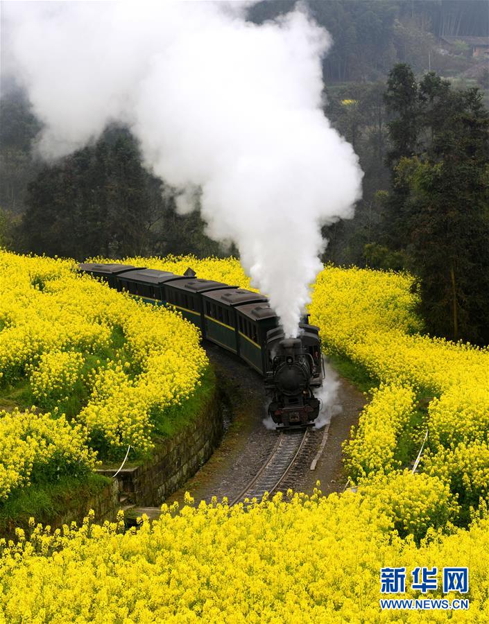 初春時(shí)節(jié),在花海中穿行的嘉陽(yáng)小火車迎來(lái)了每年的旅游旺季,眾多游客慕名前來(lái)乘坐。