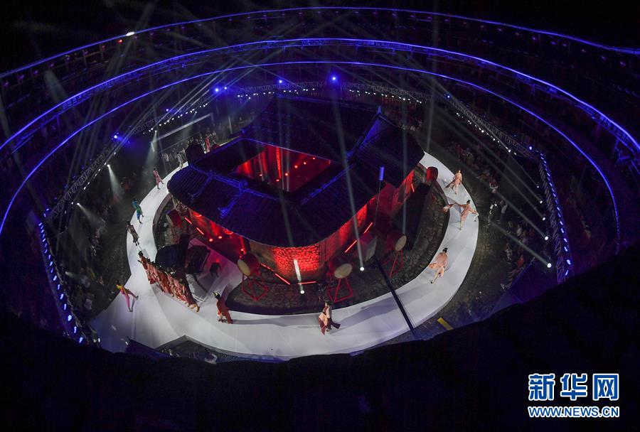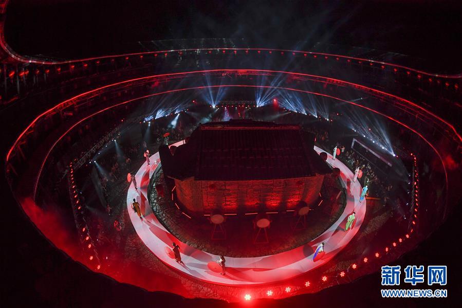 4月27日,模特在位于福建省南靖縣的土樓裕昌樓展示服飾。 當日,土樓光語國際時尚大秀在福建省南靖縣的土樓裕昌樓內舉行。這場融匯文化、時尚與旅游元素的大秀,通過傳統(tǒng)與時尚的有機融合,展現(xiàn)南靖土樓及文化的魅力和風采。 新華社記者魏培全攝