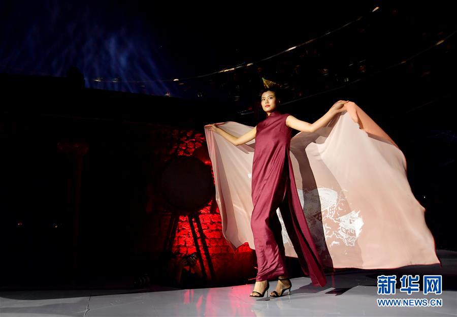 4月27日,表演結束后,模特在向觀眾致意。 當日,土樓光語國際時尚大秀在福建省南靖縣的土樓裕昌樓內舉行。這場融匯文化、時尚與旅游元素的大秀,通過傳統(tǒng)與時尚的有機融合,展現(xiàn)南靖土樓及文化的魅力和風采。 新華社記者魏培全攝