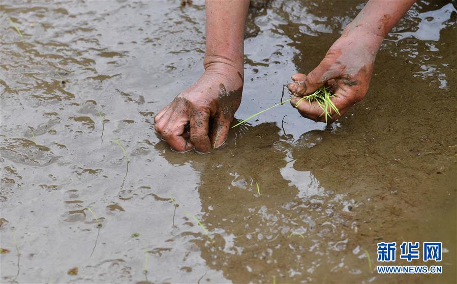 在黔桂烏英苗寨,村民搬運(yùn)秧苗去插秧(4月17日攝)。 新華社記者 黃孝邦 攝