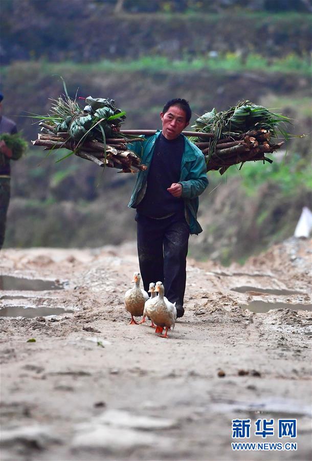 在黔桂烏英苗寨,村民勞作歸來(lái)(3月25日攝)。 新華社記者 黃孝邦 攝