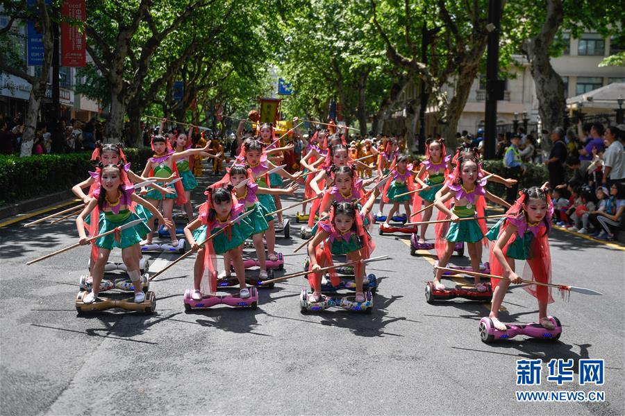 5月4日,扮演成“小哪吒”的演員在巡游隊伍中表演。當(dāng)日,第十五屆中國國際動漫節(jié)彩車巡游活動在浙江杭州南宋御街中北創(chuàng)意街區(qū)舉行。巡游表演隊伍約500米長,由4輛大型動漫彩車、1輛小火車及400多名演員組成。新華社記者 黃宗治 攝