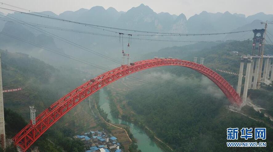 9月12日使用無人機拍攝的大小井特大橋。目前,橫跨在貴州省羅甸縣大井河上的大小井特大橋建設(shè)進入沖刺階段。大小井特大橋全長1.5公里,主跨450米,是世界最大跨徑上承式鋼管混凝土拱橋。據(jù)了解,該橋是平塘至羅甸高速公路關(guān)鍵性工程,對打通貴州“斷頭路”,助推滇黔桂石漠化片區(qū)脫貧攻堅具有重要意義。新華社記者劉續(xù)攝