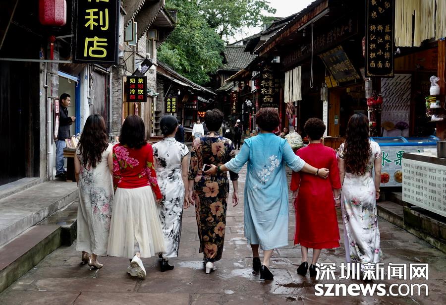 古鎮(zhèn)拍照的游客 李仁奇 攝