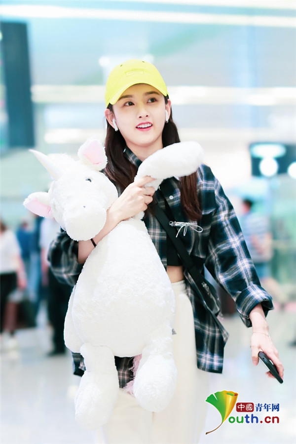 2019年5月12日,北京,宋祖兒現(xiàn)身機(jī)場(chǎng)。她穿格子襯衫戴小黃帽揮手大步走,元?dú)馍倥盍M滿,抱玩偶變身獨(dú)角獸女孩童趣十足超可愛。
