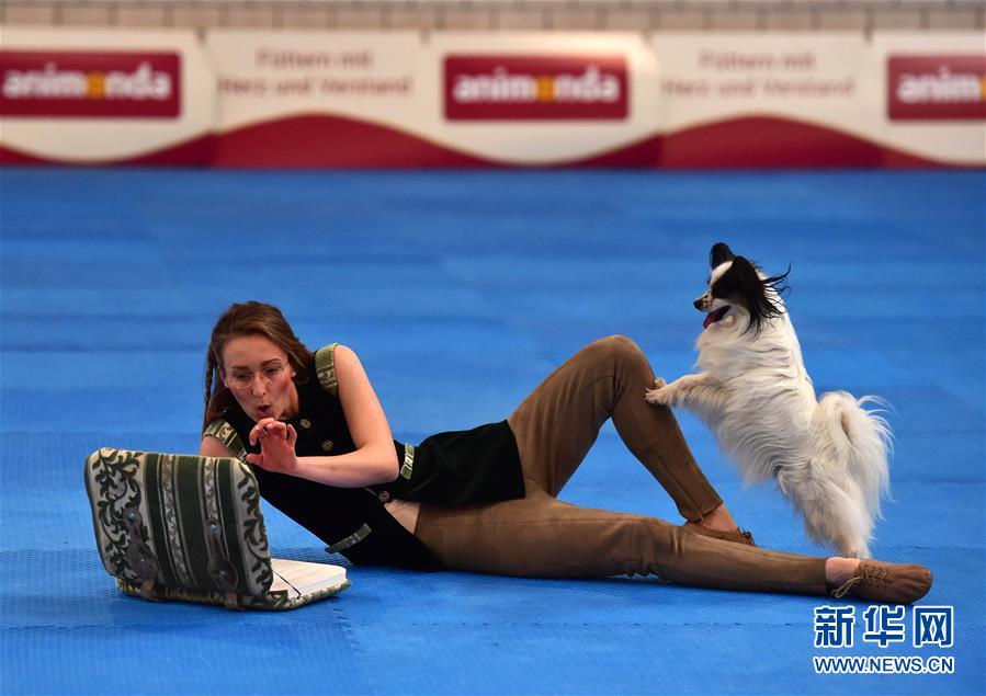 5月19日,在德國(guó)多特蒙德舉行的寵物展上,一名女士帶著愛犬參加寵物跳舞比賽。 為期三天的德國(guó)多特蒙德“狗和貓”寵物展19日落幕。寵物展期間,人們帶著自己的“萌寵”來到會(huì)場(chǎng),參與寵物跳水、舞蹈、選美等趣味比賽,并與其他寵物愛好者及展商交流互動(dòng)。 新華社記者逯陽攝