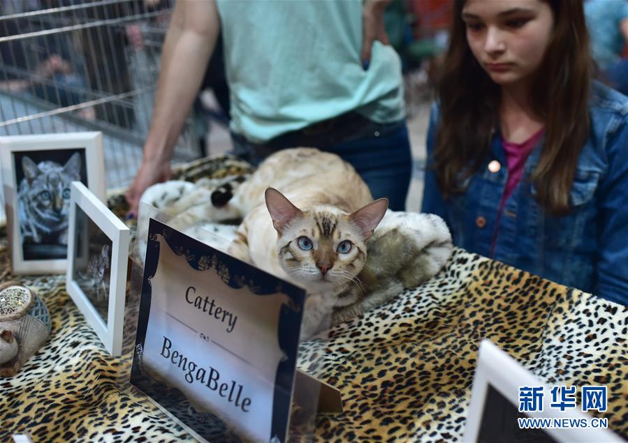 這是5月19日在德國(guó)多特蒙德舉行的寵物展上拍攝的一只孟加拉貓。 為期三天的德國(guó)多特蒙德“狗和貓”寵物展19日落幕。寵物展期間,人們帶著自己的“萌寵”來到會(huì)場(chǎng),參與寵物跳水、舞蹈、選美等趣味比賽,并與其他寵物愛好者及展商交流互動(dòng)。 新華社記者逯陽攝