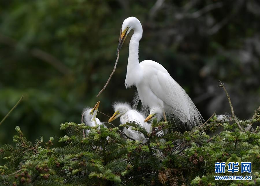 在江西省南昌市新建區(qū)象山森林公園內(nèi),白鷺和自己的雛鳥在一起(5月21日攝)。 近日,在江西省南昌市新建區(qū)象山森林公園內(nèi),已安家筑巢的大批鷺鳥陸續(xù)孵化出了后代。象山森林公園有著“鷺鳥王國(guó)”的美譽(yù),生態(tài)環(huán)境良好,每年都會(huì)吸引白鷺、蒼鷺、夜鷺等種類的鷺鳥飛抵棲息和繁衍后代。 新華社記者 彭昭之 攝