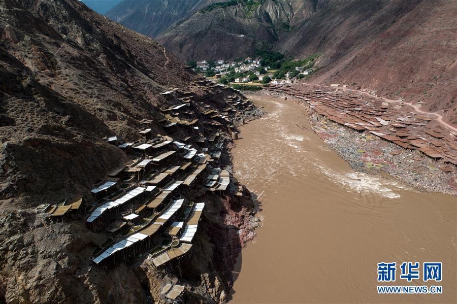這是西藏芒康縣納西民族鄉(xiāng)的古鹽田景觀(5月22日無(wú)人機(jī)拍攝)。 位于西藏昌都芒康縣瀾滄江畔的古鹽田,至今仍保持最原始的手工曬鹽方式。據(jù)史料記載,唐朝時(shí)期當(dāng)?shù)鼐烷_(kāi)始曬鹽。鹽田在瀾滄江兩岸依山而建,由多根木柱搭架,架上用透水性強(qiáng)的泥土鋪成平面夯實(shí),當(dāng)?shù)鼐用駨臑憸娼系柠}井、鹽池中取出鹵水倒入鹽田,經(jīng)陽(yáng)光蒸曬、風(fēng)干,結(jié)晶成鹽。遠(yuǎn)遠(yuǎn)望去,鹽田錯(cuò)落有致,田中鹵水宛若鏡面,形成壯麗奇觀。 新華社記者 李鑫 攝