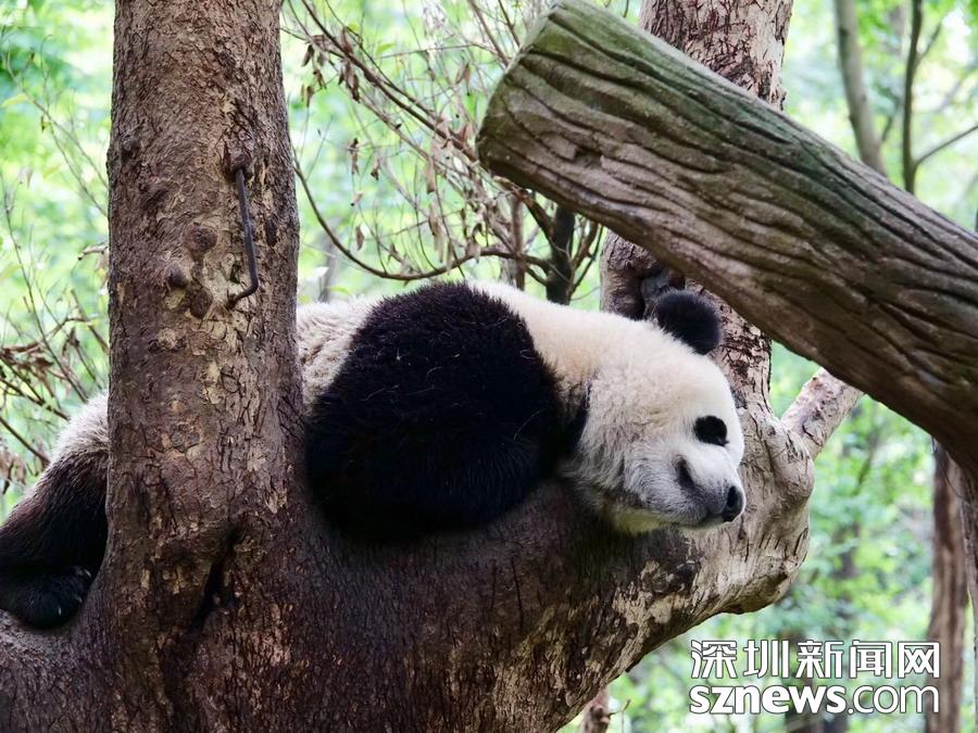 5月26日在中國(guó)大熊貓保護(hù)研究中心臥龍神樹坪基地的“熊貓幼兒園”內(nèi)拍攝的大熊貓。