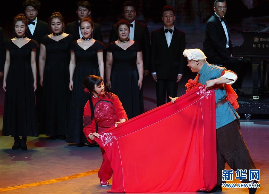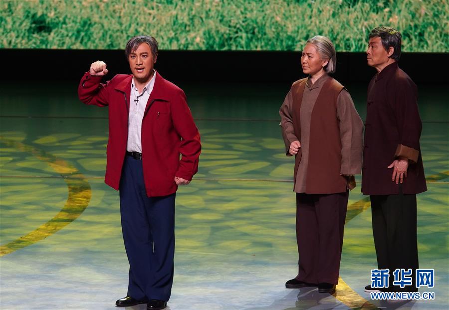 6月2日,演員在第十二屆中國(guó)藝術(shù)節(jié)閉幕式上匯報(bào)演出獲得文華大獎(jiǎng)的河北梆子《李保國(guó)》選段。 新華社記者 任瓏 攝