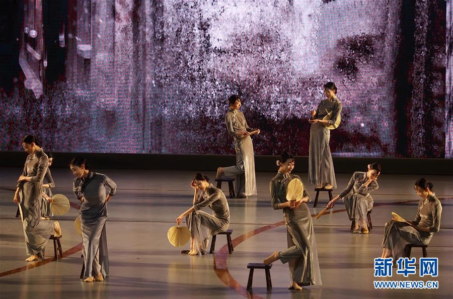 6月2日,上海歌舞團(tuán)演員在第十二屆中國(guó)藝術(shù)節(jié)閉幕式上匯報(bào)演出獲得文華大獎(jiǎng)的舞劇《永不消逝的電波》選段。  新華社記者 任瓏 攝