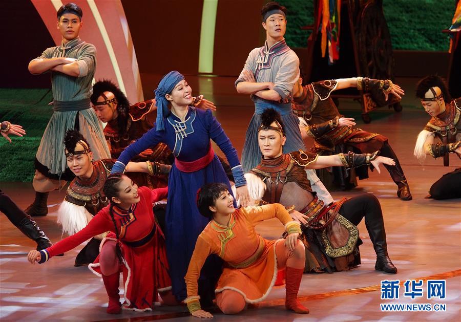 6月2日,內(nèi)蒙古藝術(shù)學(xué)院演員在第十二屆中國(guó)藝術(shù)節(jié)閉幕式上匯報(bào)演出獲得文華大獎(jiǎng)的舞劇《草原英雄小姐妹》選段。  新華社記者 任瓏 攝