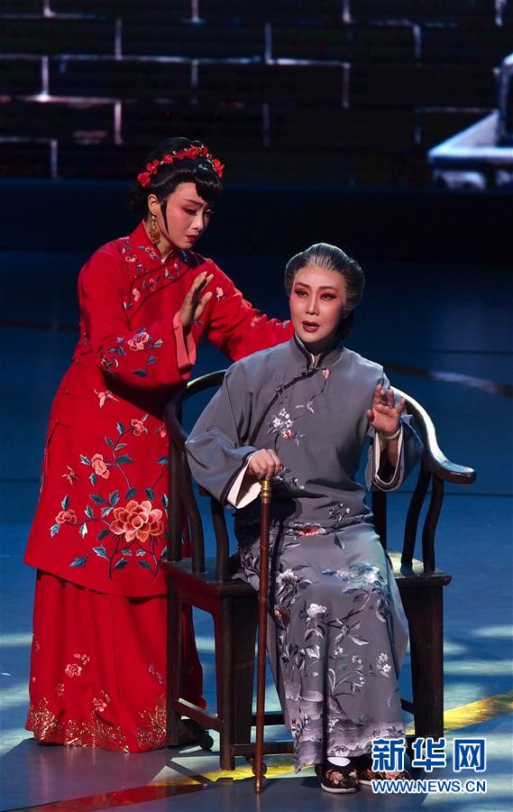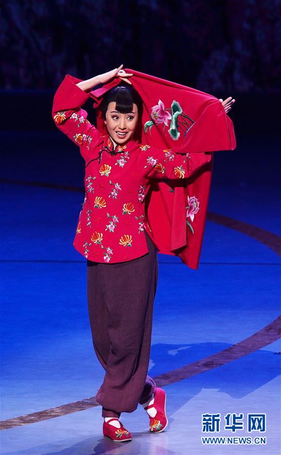 6月2日,獲得文華表演獎(jiǎng)的評(píng)劇演員王平在第十二屆中國(guó)藝術(shù)節(jié)閉幕式上匯報(bào)演出。  新華社記者 任瓏 攝