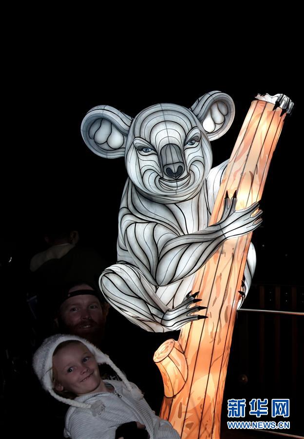 6月8日,在澳大利亞悉尼塔朗加動(dòng)物園,游客參觀動(dòng)物造型花燈。新華社記者 白雪飛 攝