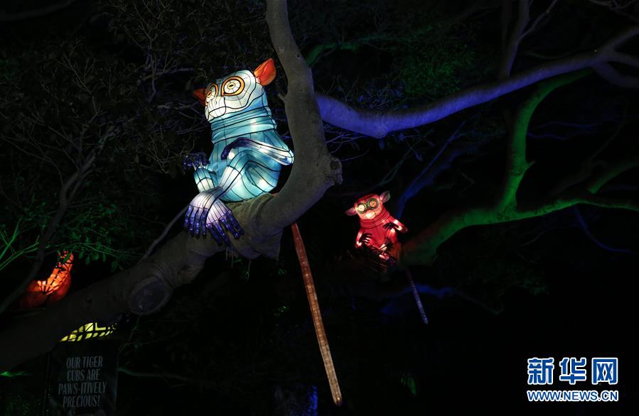 這是6月8日在澳大利亞悉尼塔朗加動(dòng)物園拍攝的動(dòng)物造型花燈。新華社記者 白雪飛 攝