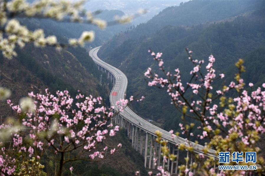 貴州思劍高速公路劍河縣岑松鎮(zhèn)段的春季景觀(guān)(3月23日攝)。陽(yáng)春時(shí)節(jié),貴州思(南)劍(河)高速公路劍河縣岑松鎮(zhèn)附近的桃花和梨花陸續(xù)開(kāi)放。 新華社記者楊文斌攝