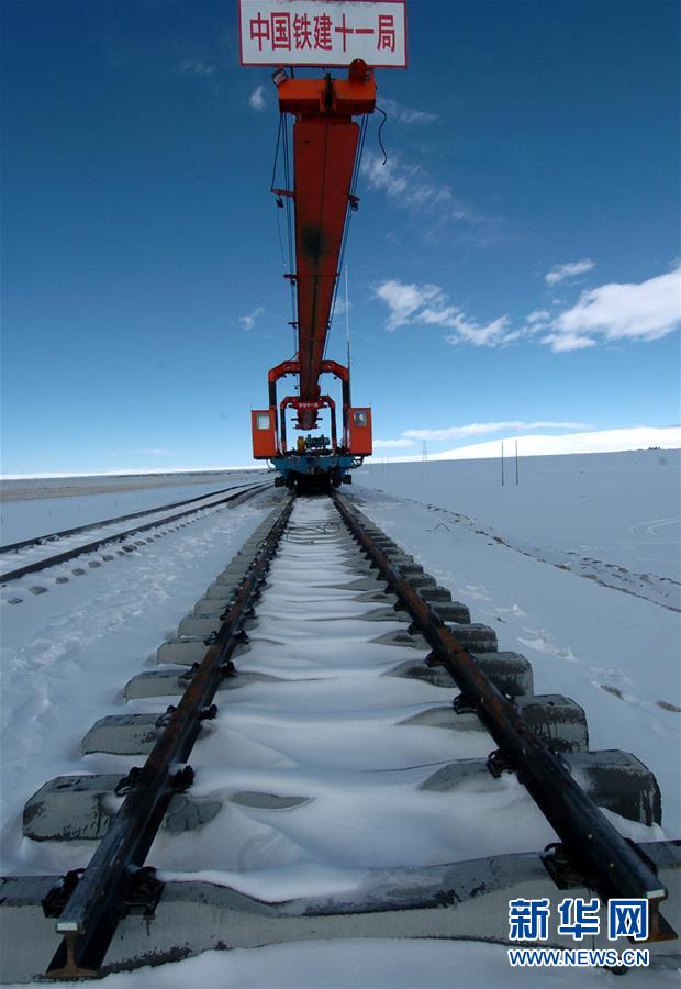 青藏鐵路在鋪軌建設(shè)中(2004年11月19日攝)。新華社記者覺果攝
