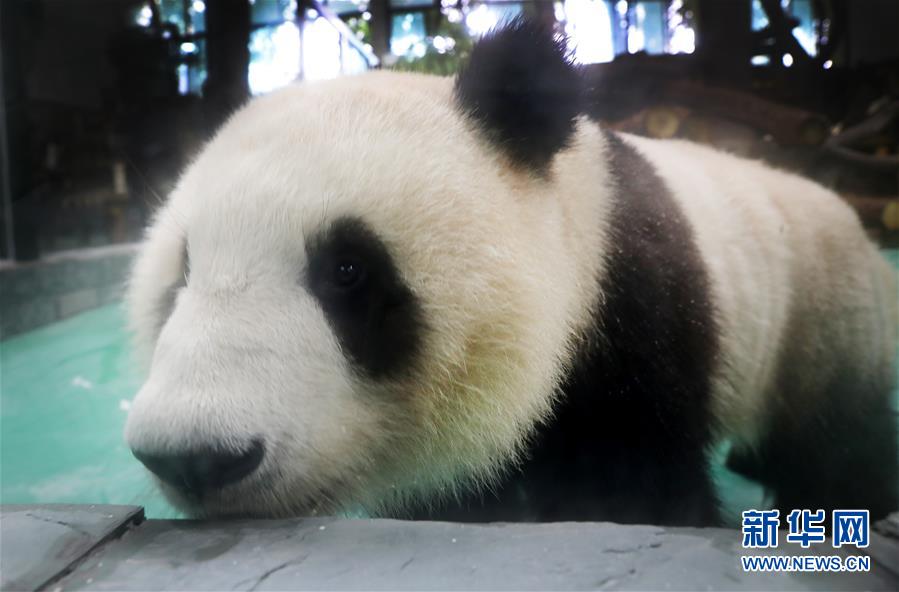 6月18日,大熊貓“和風(fēng)”湊到展館玻璃幕墻邊向外張望。 當(dāng)日,來自四川的大熊貓兄弟“和風(fēng)”與“星光”飛抵上海,正式開始了在上海動(dòng)物園為期三年的生活。為迎接這對(duì)“風(fēng)光兄弟”,上海動(dòng)物園將原有的大熊貓館擴(kuò)建并裝修一新,空調(diào)、水池、游樂場(chǎng)以及竹葉儲(chǔ)存間等配置齊全。 新華社記者 方喆 攝