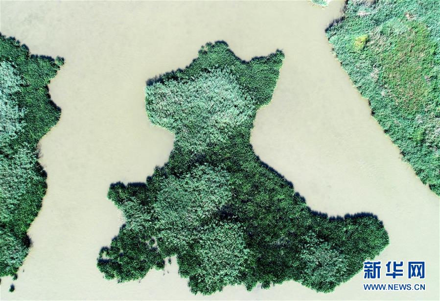 這是天津市寧河區(qū)七里海濕地內(nèi)蘆葦和水面形成的圖案(6月22日無人機(jī)拍攝)。新華社記者 岳月偉 攝
