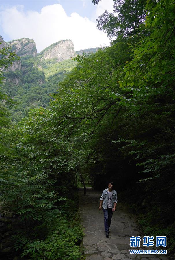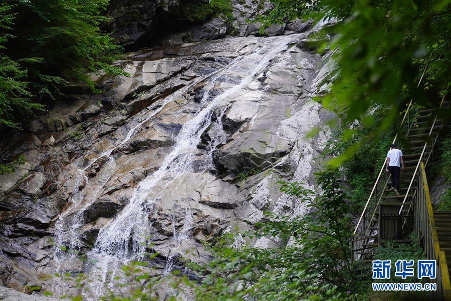 7月10日,游客在太白縣青峰峽景區(qū)游覽。 陜西太白縣青峰峽國家級(jí)森林公園位于秦嶺主峰太白山北麓,這里青山疊嶂,瀑布穿流,氣候涼爽,年平均氣溫7.6攝氏度,成為炎炎夏日中人們避暑休閑的好去處。 新華社記者 邵瑞 攝