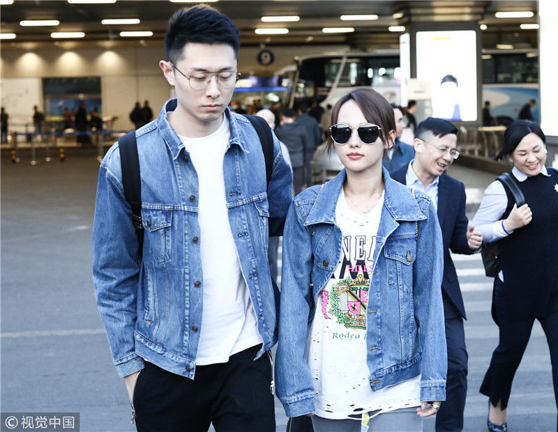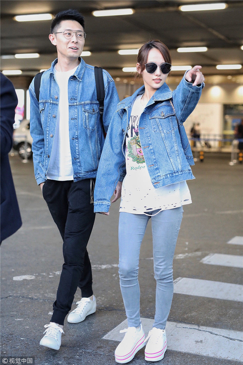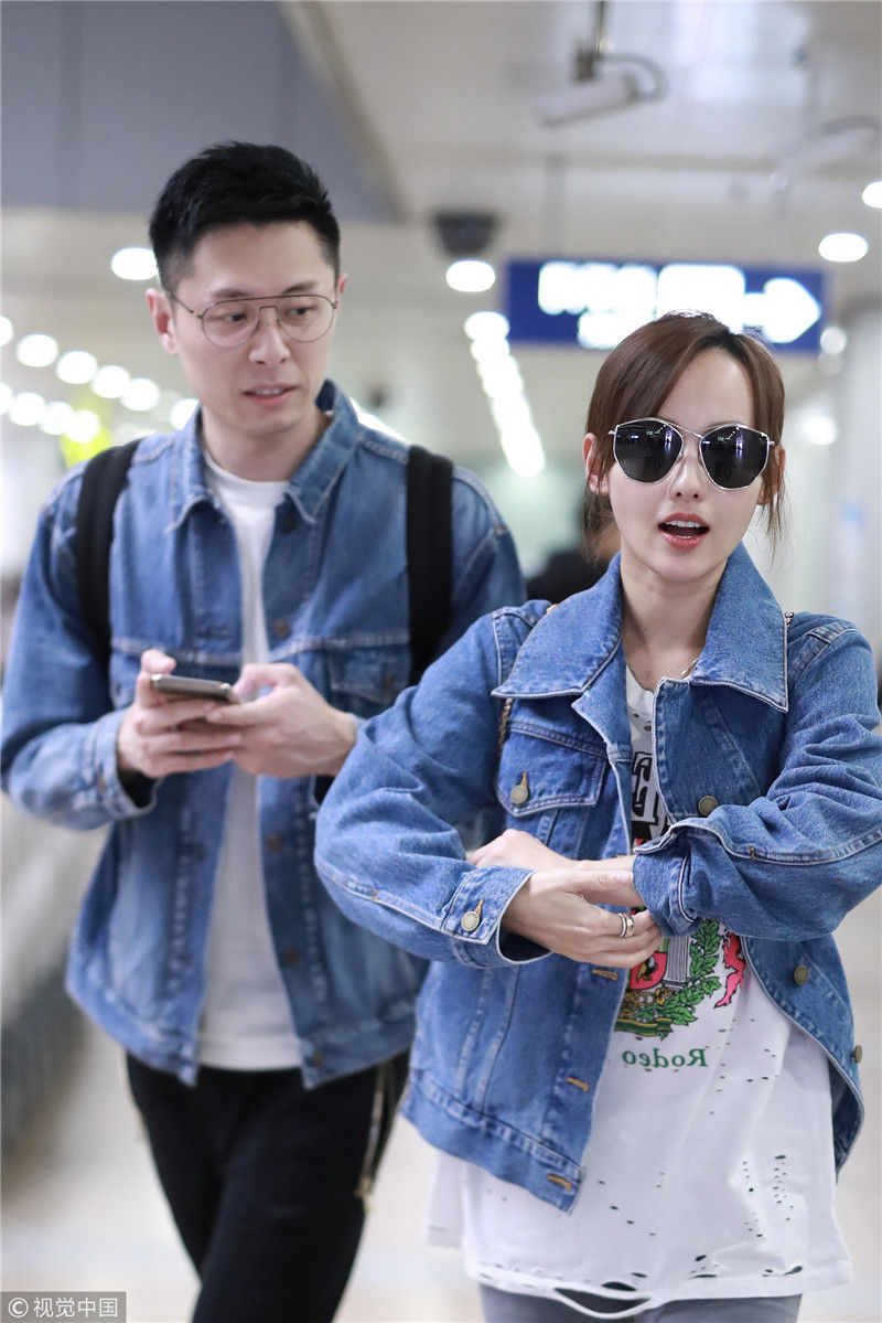2019年4月1日,張嘉倪與老公買超現(xiàn)身機場,從廣州飛往北京。兩人同穿情侶牛仔裝,一路對視熱聊感情超甜,張嘉倪對鏡頭熱情揮手舉公仔,親和力MAX。匿名/視覺中國編輯/陳進