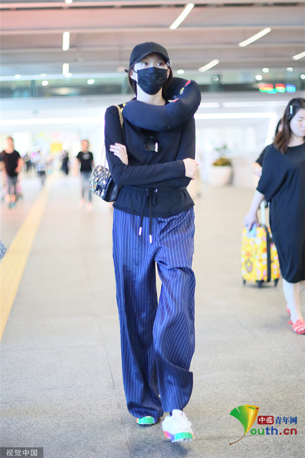關(guān)曉彤淡定抱臂行走 脖子上掛U型枕毫無(wú)偶像包袱