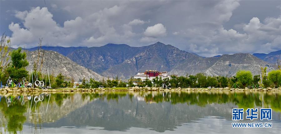 6月5日拍攝的藍(lán)天白云和綠水之間的布達(dá)拉宮。