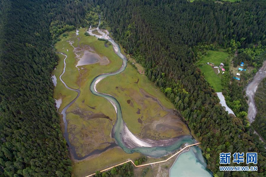被譽(yù)為“拉薩之肺”的拉魯濕地(6月5日無(wú)人機(jī)拍攝)。